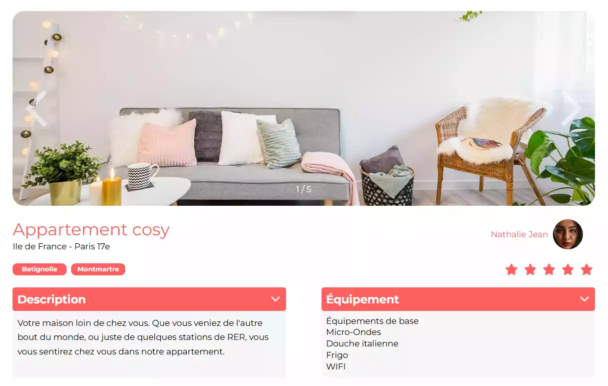 Site de location d'appartements entre particuliers développé avec React et Sass.