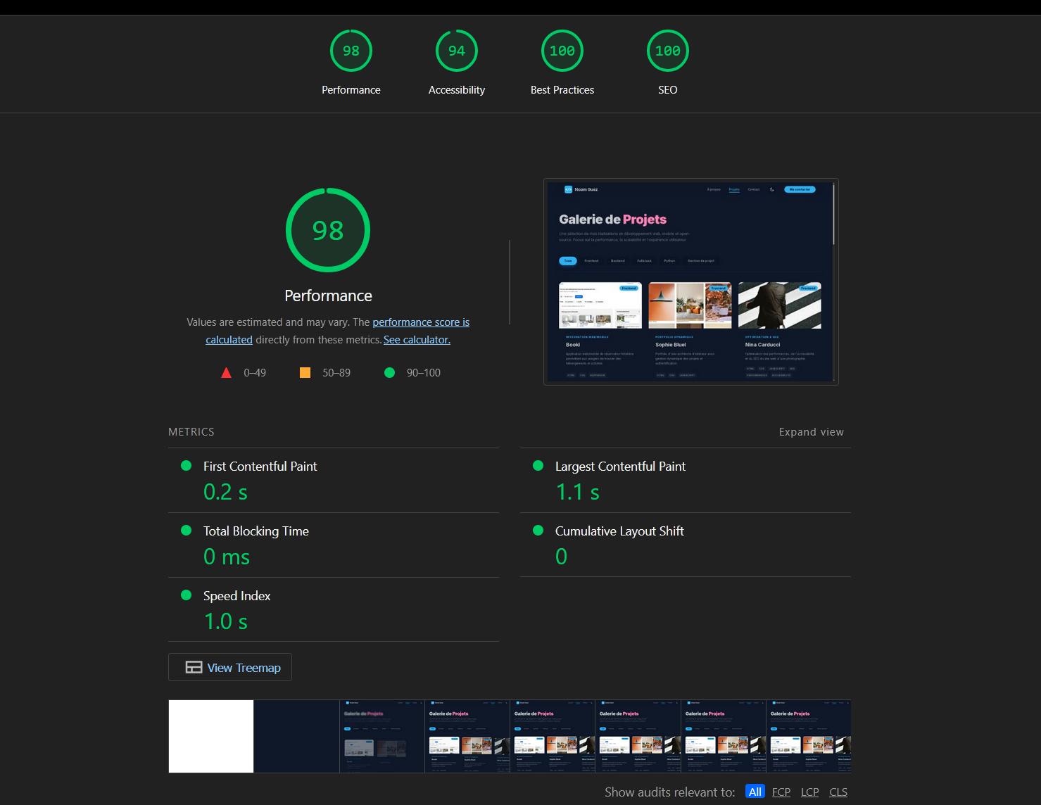 Entièrement responsive, il s'adapte à tous les types d'appareils, et il est hébergé sur Vercel pour garantir des temps de chargement rapides et une gestion fluide. À travers ce site, vous pouvez explorer mon parcours, découvrir mes compétences techniques et créatives, et consulter mes projets les plus récents.